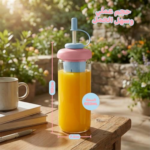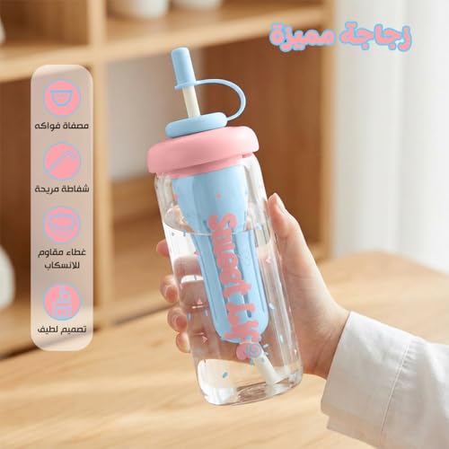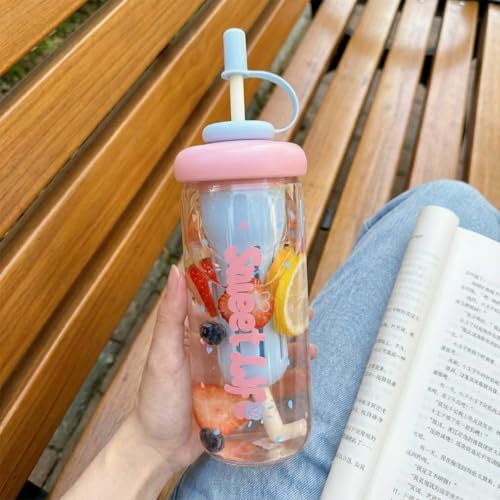 Generic - Bottle Water Glass 650 Ml with Strainer Infuser, Leak-Proof BPA-Free Cap, Reusable Drinking Bottle for Water Tea Juice Milk, Easy-Grip Travel Bottle, Cute Design, Easy Clean, GG-2527 (Pink)