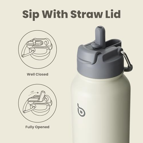 BOTTLE BOTTLE - زجاجة مياه رياضية معزولة من الستانلس ستيل بسعة 32 اونصة مع ماصة وحامل حبوب الدواء رمادي بوتل
