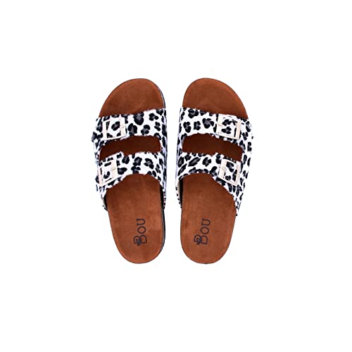 BOU - BOU Dual Band Buckle Slipper Leopard Pattern Black X White, 40 EU