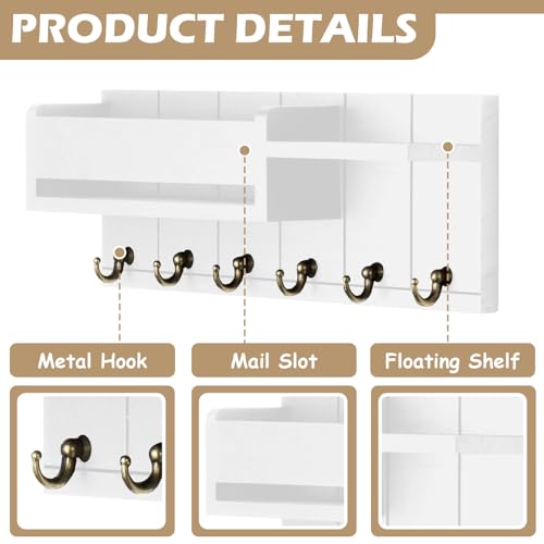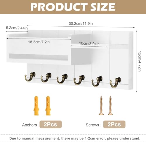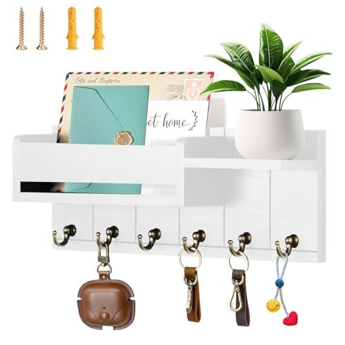 BOUFEIDA - Key Holder, Key Holder with Shelf, Wall Key Holder with 6 Hooks, Key Board, Key Cabinet, Wood for Home Entrance Area, Office, Mudroom, Hallway, White