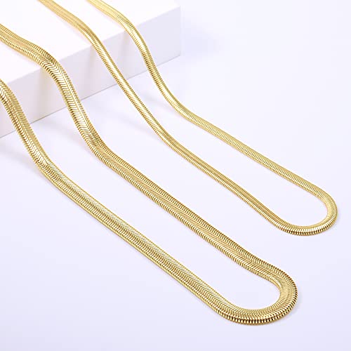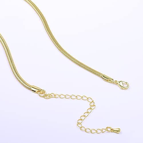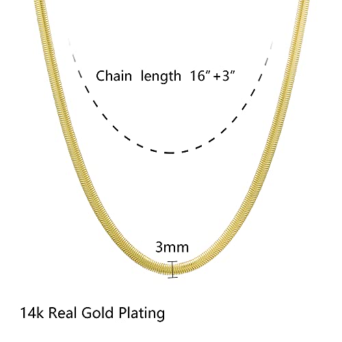 BOUTIQUELOVIN - BOUTIQUELOVIN 14K Gold Plated Chain Necklaces for Women Snake Herringbone Choker Necklaces for Womens Mothers Day Gifts, 16 inches long 3mm wide, Brass, n