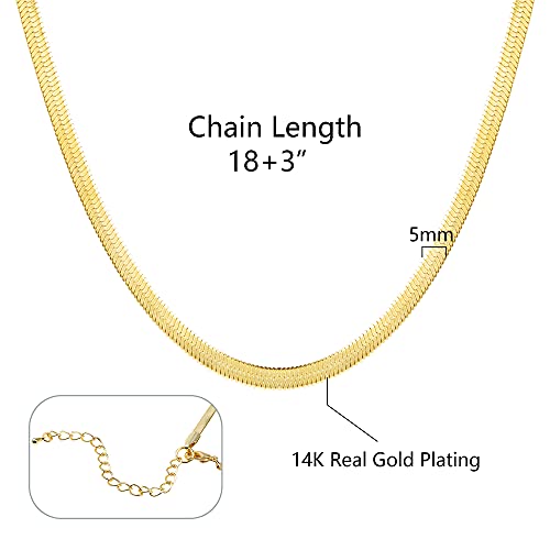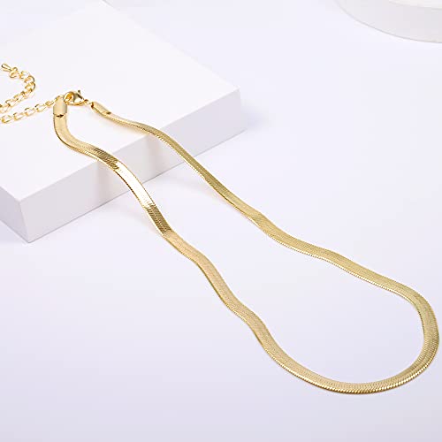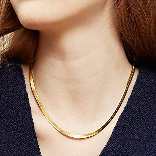 BOUTIQUELOVIN - بوتيك لوفين سلسلة مطلية بالذهب عيار 14 قيراط للنساء بتصميم ثعبان متعرج لهدايا عيد الام، طول 18 انش وعرض 5 ملم، نحاسي، ان