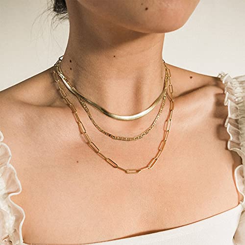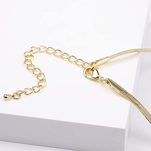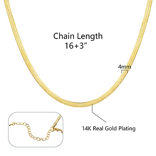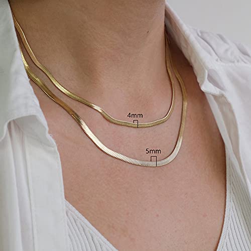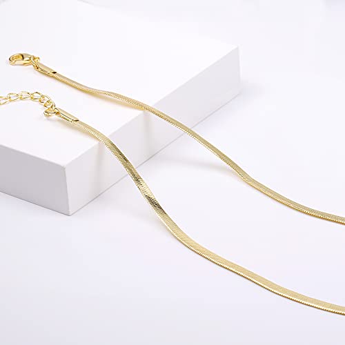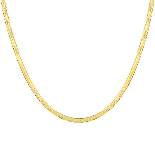 BOUTIQUELOVIN - BOUTIQUELOVIN 14K Gold/Silver Plated Snake Chain Necklaces Herringbone Choker Necklaces for Womens, Length: 16" Width:4mm, Brass, n ,