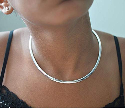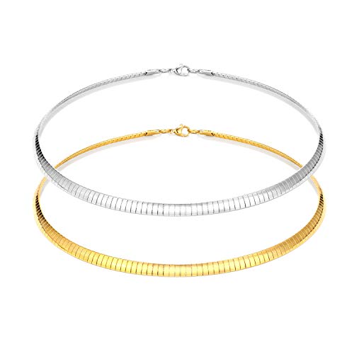 BOUTIQUELOVIN - قلادة سلسلة بطوق ضيق للنساء والبنات بتصميم ثعبان اوميجا مسطحة من قطعتين, ستانلس ستيل
