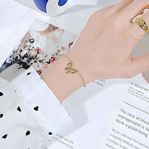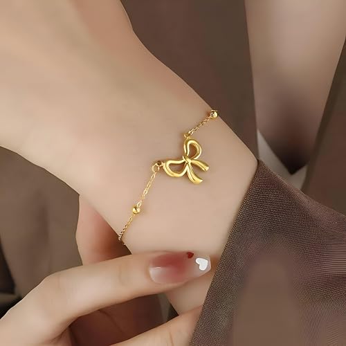 Generic - سوار بفيونكة - سوار ذهبي انيق قابل للتعديل للنساء، هدية مجوهرات انيقة للبنات والنساء
