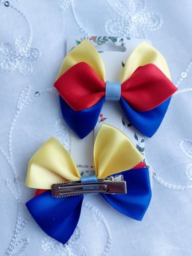 Generic - مجموعة أربطة شعر على شكل فيونكة، ألوان أزرق وأحمر وأصفر،3 إكسسوارات شعر للبنات