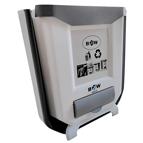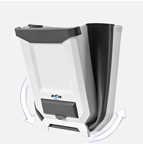 BOW INDIA - Abs Plastic Hanging/Wall Mounted Trash Can For Kitchen Cabinet Door/Car/Bathroom/Office/Bedroom, Folding Garbage Bin, Collapsable Waste Bin (White), Open-Top