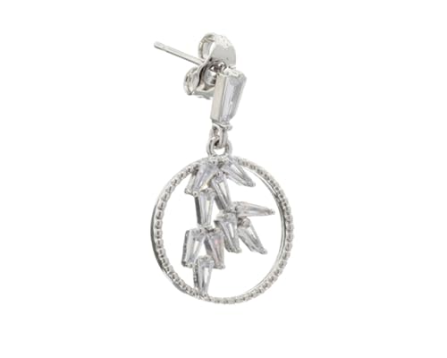 Box Hodom - أقراط أذن بدلاية به فصوص كريستال لامعة للنساء , فضي Halk-167