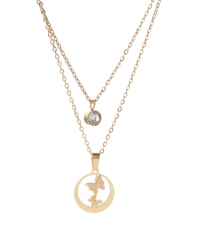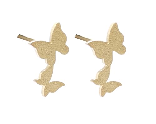 Generic - طقم اقراط مرصعة ببابين وسلسلة من الستانلس ستيل على شكل فراشة للنساء من بوكس هودوم، ذهبي B-O-X-N-113