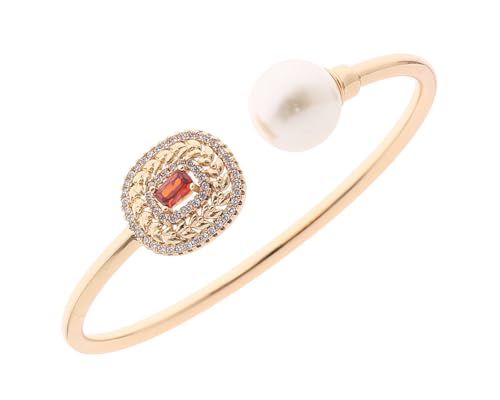 Box Hodom - سوار عريض من فولاذ مقاوم للصدأ مزين بفصوص ولولي للنساء بوكس هودوم ذهبي-12
