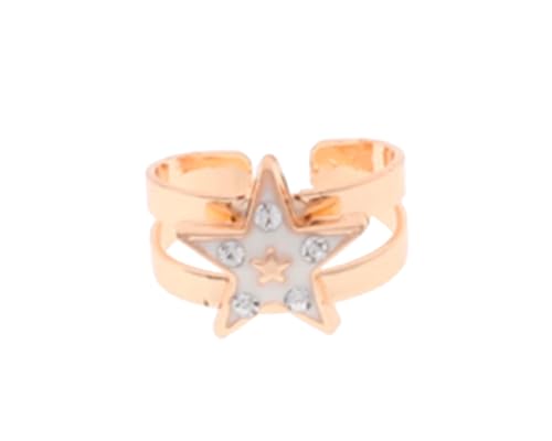 Box Hodom - Box Hudom Elegant White Star Shape Ring With Shiny Crystal Lobes For Girls Adjustable Size, Gold Ring-146