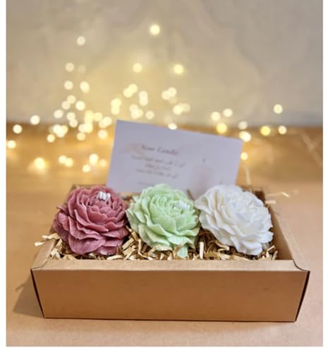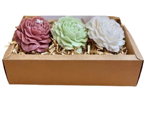 Generic - بوكس 3 شموع على شكل وردة زهرة الفاوانيا معطر شمع مصنوع من شمع طبيعي100% لتزيين المنزل، لغرفة النوم والحمام، مجموعة ديكور تجريدي جمالي (خمري أخضر أبيض)