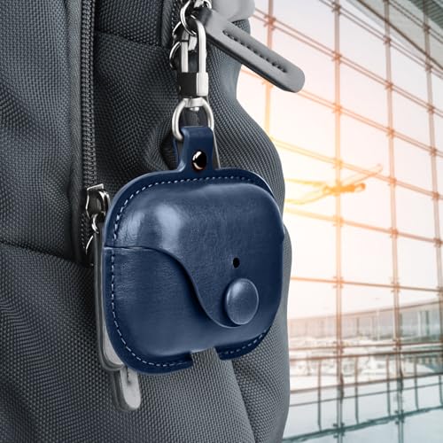 Boxome - غطاء حماية لسماعات ايربودز برو 2 من بوكسوم (سماعات ايربودز وعلبة الشحن غير متضمنة)، حافظة واقية جلدية فاخرة مع بطانة داخلية وحلقة معدنية، أزرق اوكسفورد