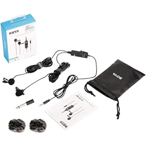 boya - Boya 2x1 Microphone, Dual Omnidirectional, Clear Sound, Black, Auxiliary, 100Hz-20kHz, 2 Channels, Home Studio, Podcasting, Video Production