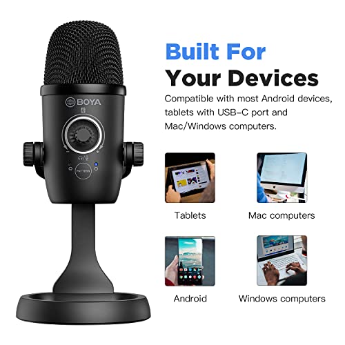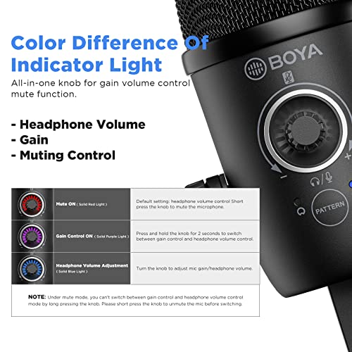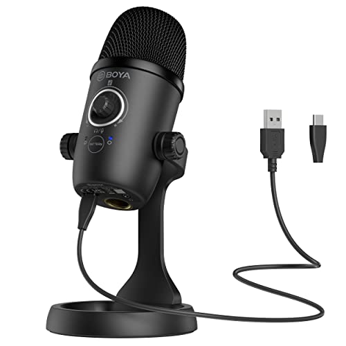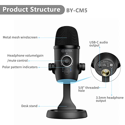 BOYA - BOYA by-CM5 Mini USB Microphone for Computer PC Gaming, Plug and Play, Cardioid Omnidirectional Polar Patterns, Monitoring, Gain and Mute Control, Condenser Streaming Mic for Studio Podcast Recording
