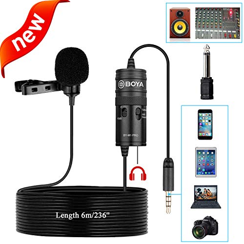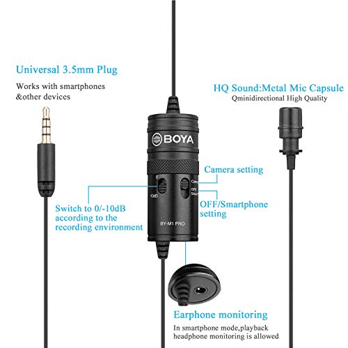 BOYA - BOYA BY-M1 PRO Lapel Mic (3.5mm Input, Monitor Monitor) with Omnidirectional Ultra Mini Microphone Clip for Smartphones, DSLRs, Camcorders, Audio Recorders, PC Recordings