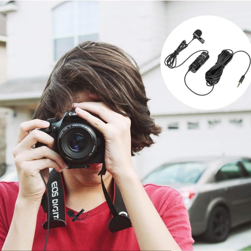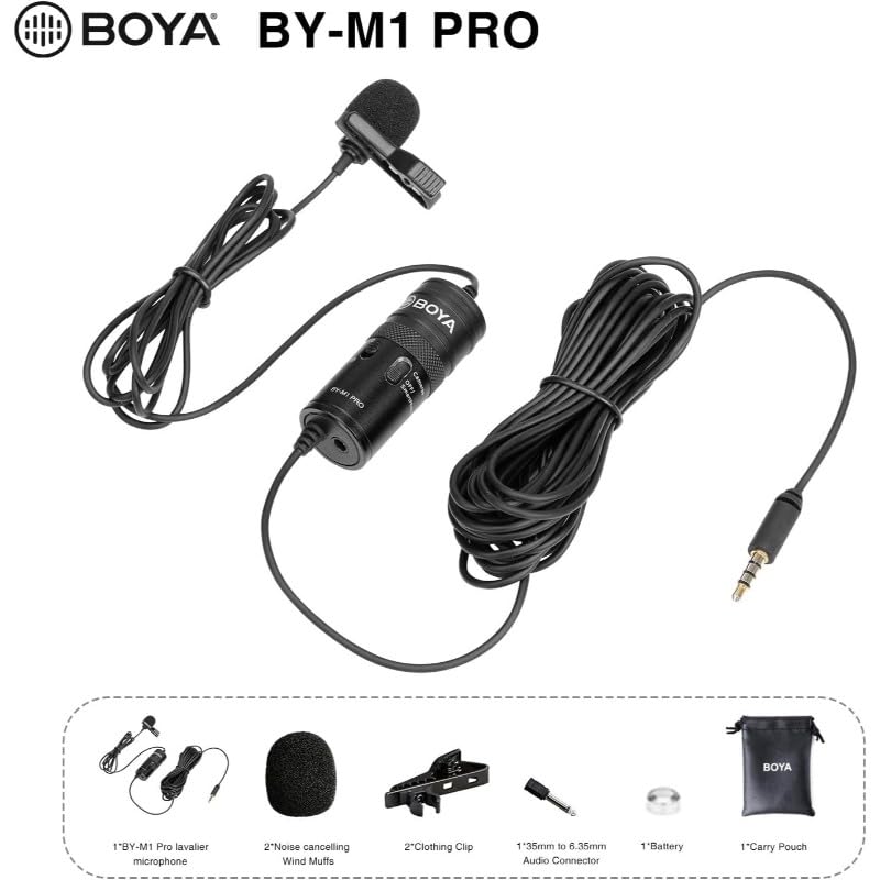 boya - ميكروفون مطور من بويا BY-M1 برو متعدد الاتجاهات مزود بمشبك لميكروفون يثبت على البالطو بياقة قلابة للموبايل وكاميرا أحادية العدسة العاكسة وكاميرات الفيديو للتسجيلات الصوتية، وتسجيل اللاب توب (6 متر)