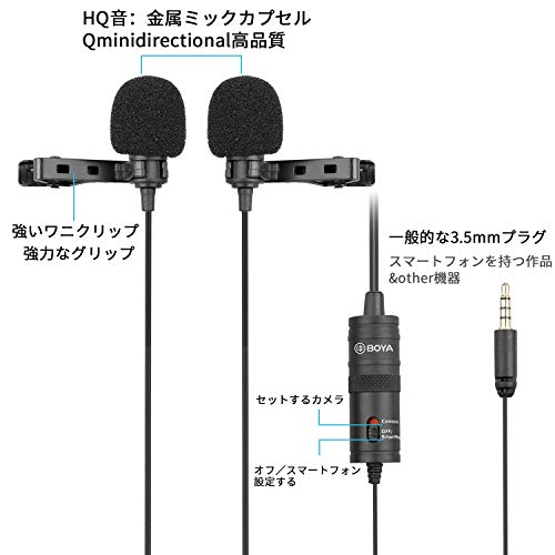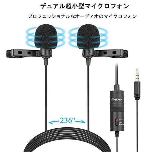 BOYA - ميكروفون بطية مزدوجة BY-M1DM، كاميرا دي اس ال ار وايفون واندرويد والهواتف الذكية مع مشبك مكثف متعدد الاتجاهات لاجهزة سامسونج وهواوي وسوني واللابتوب والمقابلات ويوتيوب (مدخل 3.5 ملم، مزدوج)