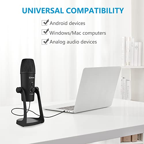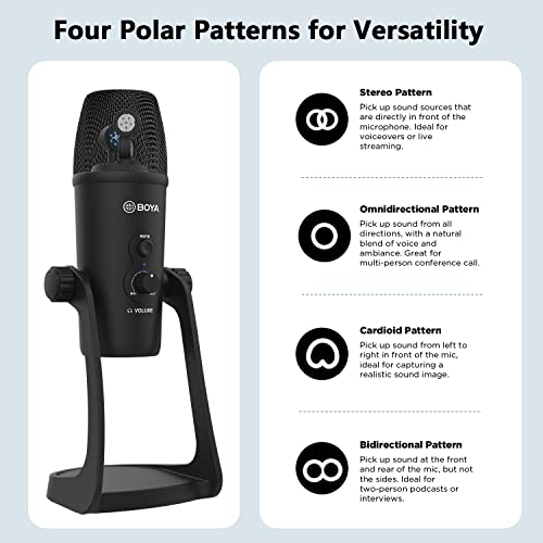 BOYA - ميكروفون احترافي برو USB XLR مكتبي بأربع أنماط لالتقاط الصوت من بويا مزود بكابل أنثى بـ 5 دبابيس ومخرج وXLR لأجهزة أندرويد صوت أنالوج كمبيوتر بودكاست ألعاب وبث مباشر BY-PM700 أبيض أحادي الاتجاه
