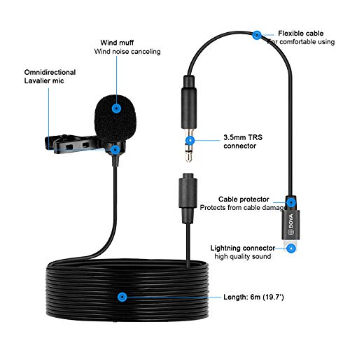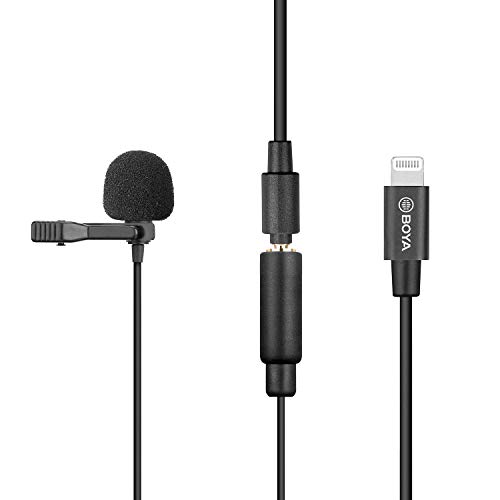 BOYA - BOYA Microphone by-M2, Digital Lavalier Omnidirectional Clip on Microphone for iPhone with MFi Certified Lightning Connector Compatible with iPhone, iPad, iPod, iOS Smartphones
