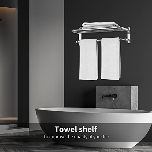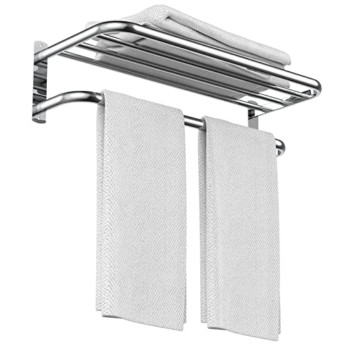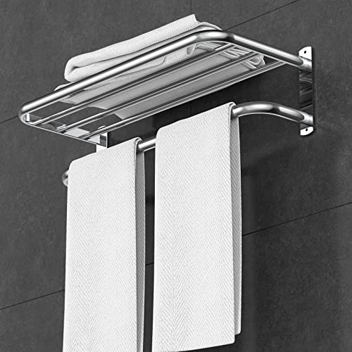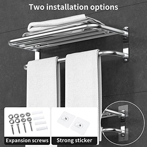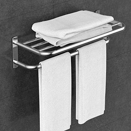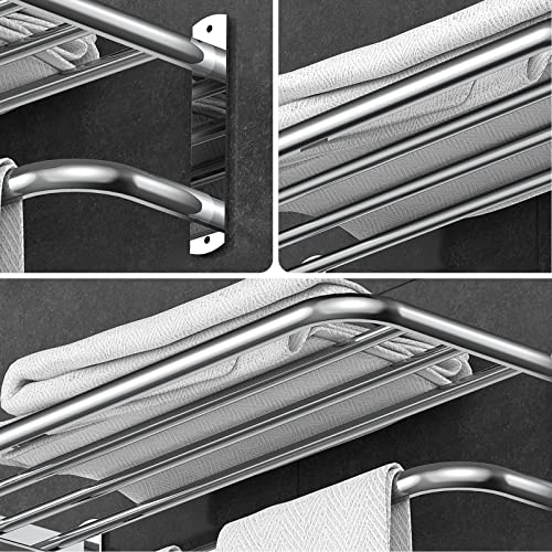 Boyorc - حامل فوط من بويورك من فولاذ مقاوم للصدا بدون ثقب، رف يثبت على الحائط، اكسسوارات الحمام، حامل مناشف الحمام مناسب للحمام والمطبخ (فضي، طبقتان)