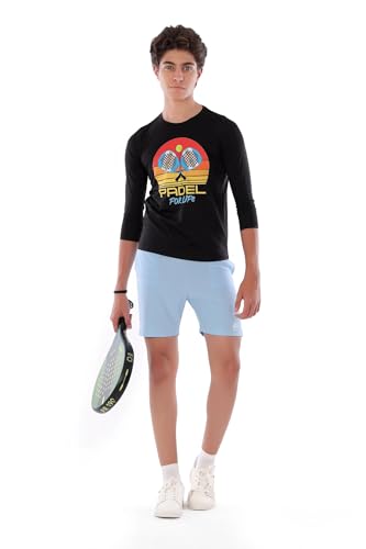 ANJA - Boys Black Retro Padel Racket T-Shirt – Sporty long Sleeve Top