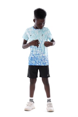 ANJA - Boys Blue Print Performance T-Shirt – Short sleeve Sporty Athletic Top