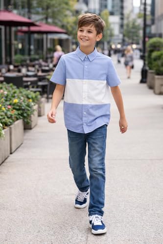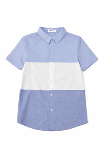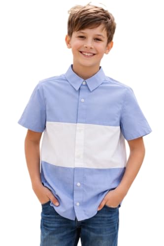 Generic - Boys Color Block Short Sleeve Button Up Shirt, Blue and White Striped Casual Collared Top, Size 11-12 Years