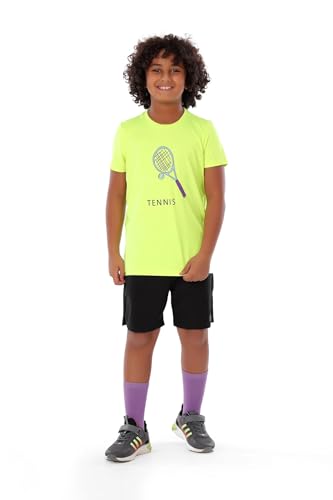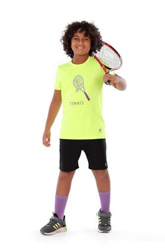 ANJA - تي شيرت رياضي للاولاد بتصميم رسومات التنس بلون اصفر نيون