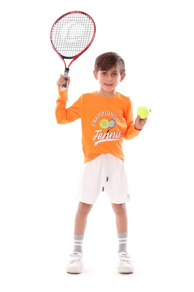 ANJA - Boys Orange Champion Tennis Long Sleeve T-Shirt – Sporty Graphic Top