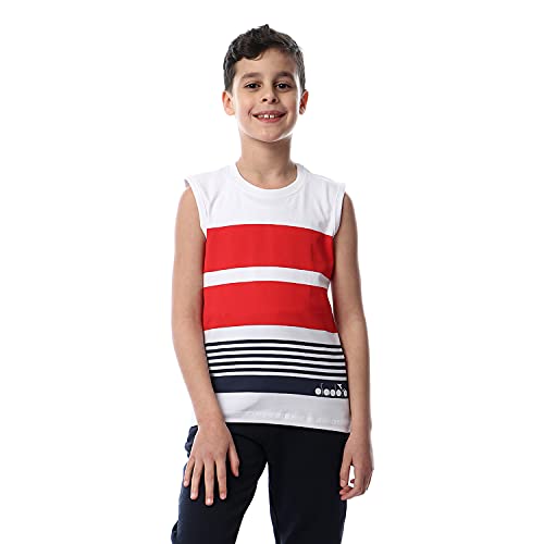 Diadora - Boys Printed Cotton Sleevless t-shirt - White & Red, 5-6 Years