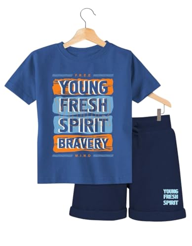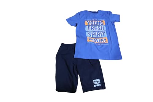 Generic - Boys Summer Two-Piece Outfit Set, Graphic T-Shirt with Shorts, Light Blue and Navy Blue, Casual Jersey Knit, Regular Fit SIZE 20