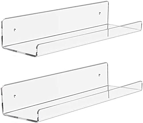 BPA - BPA Clear Acrylic Shelves Display Ledge 15" Invisible Floating Shelf for Living RoomKitchenBedroomBathroomOfficeStore, Book Picture Toys Ledge Shelf, Wall Storage Organizer, 2 Pack