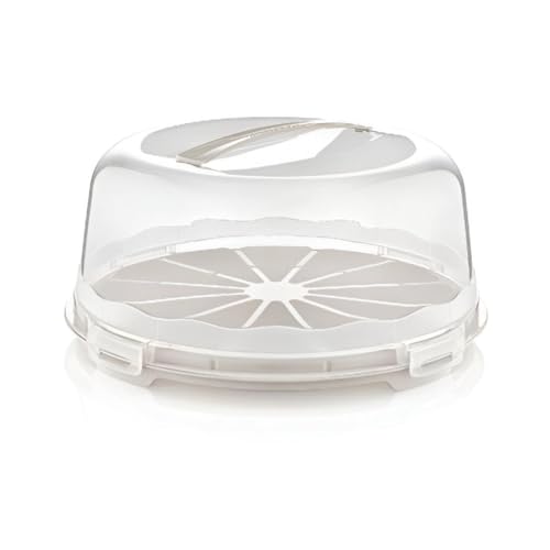 Generic - حامل خالٍ من البيسفينول ايه - حل تخزين بلاستيكي دائري متين مع غطاء بقفل كبس آمن، خالٍ من البيسفينول ايه وآمن على الطعام، مثالي لنقل الكعك والوجبات، متوفر بألوان متعددة، 32 × 14 سم.