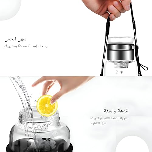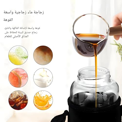 Generic - BPA-Free Glass Beverage Bottle - 750 ml Borosilicate with Tea Infuser, Neoprene Sleeve, Foldable Lid-Cup & Strap for Hot or Cold Drinks