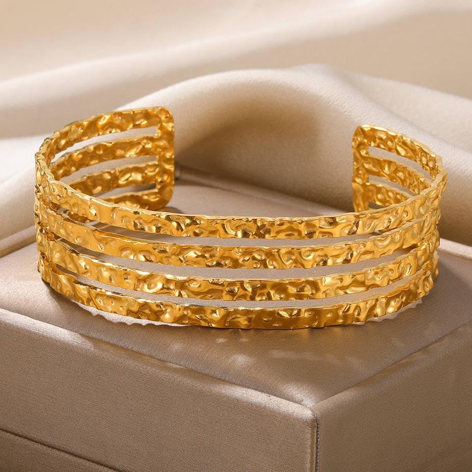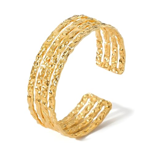 Generic - سوار عريض متعدد الخيوط من الستانلس ستيل مطلي بالذهب عيار 18 قيراط للنساء، هدية رائعة للصداقة وعيد الحب - قابل للتعديل