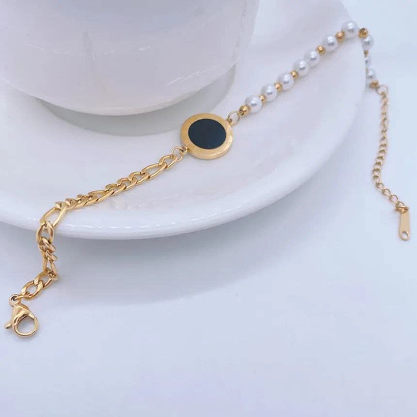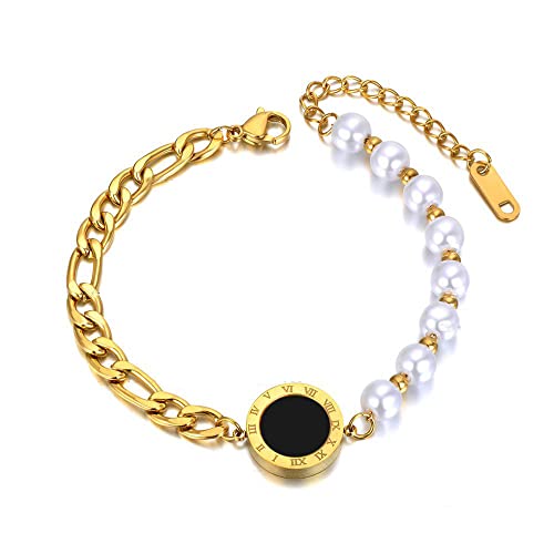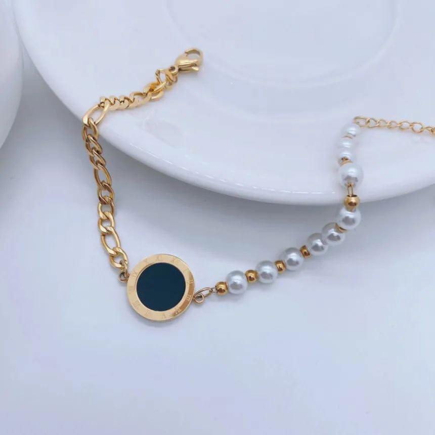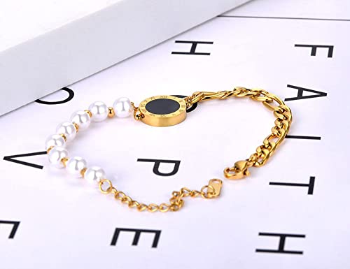 Generic - Bracelet Design Half Pearl Simulated Half Stainless Steel For Women Simple and Elegant to Showcase Stainless Steel 18K Plated Gold