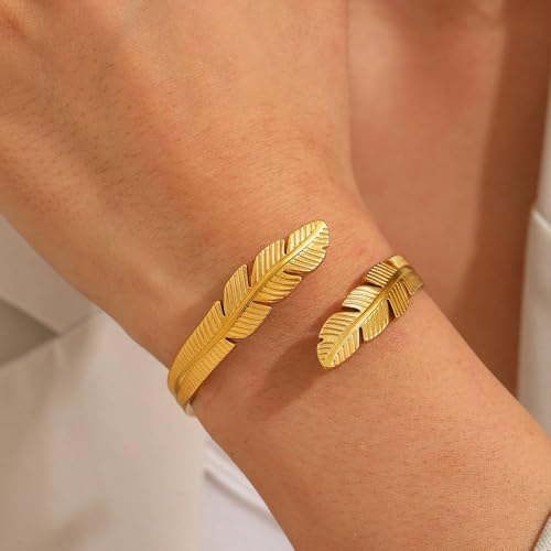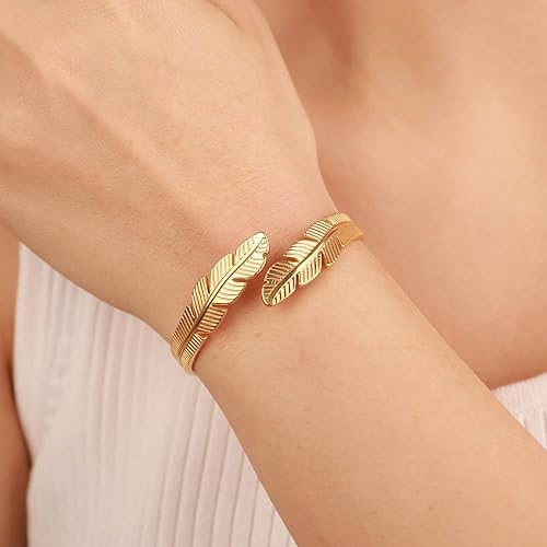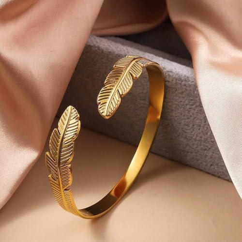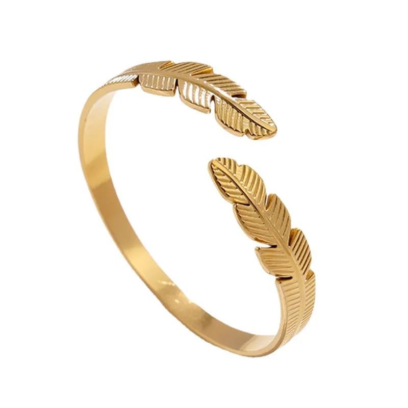 Generic - Bracelet Feather Symbolizing Freedom And Grace Stainless Steel 18k Gold Plated - Adjustable
