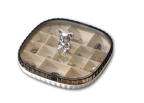 Generic - صندوق منظم مجوهرات لطيف وقابل للتكديس بجزء علوي على شكل دب لحمل الأساور، منظم للنساء والبنات لتخزين الحلقان والأساور والاكسسوارات المصنوعة بشكل يدوي بطريقة جذابة ومنظمة (1 دور)
