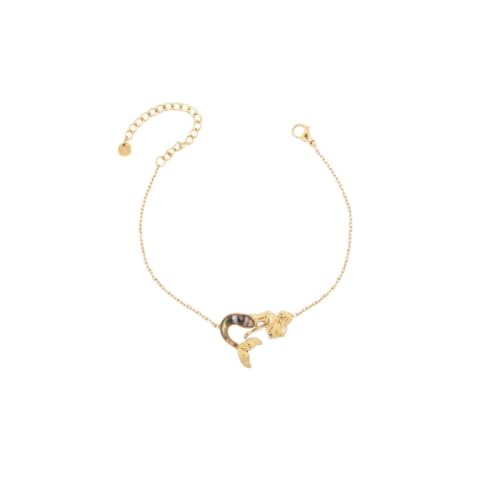 Generic - سوار ذهبي مع لمسات من اللؤلؤ، سلسلة مطلية بالذهب 45 سم، دلايات بحرية