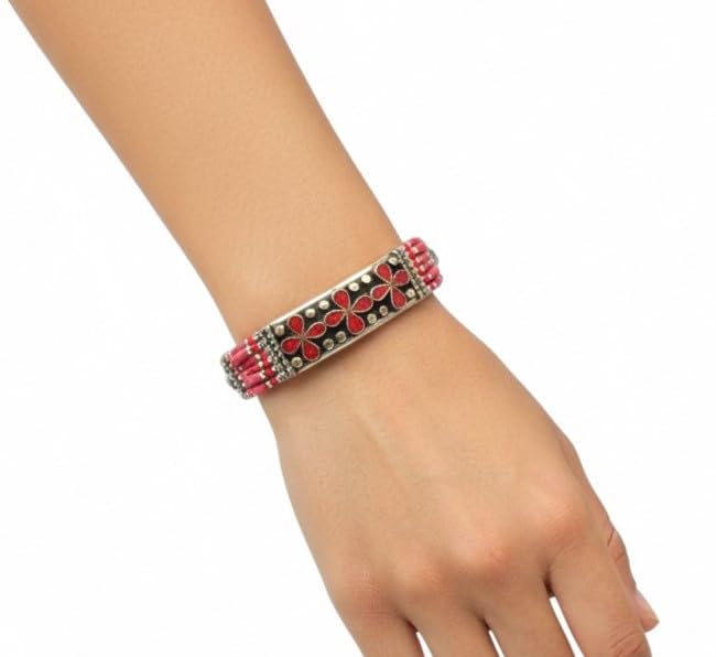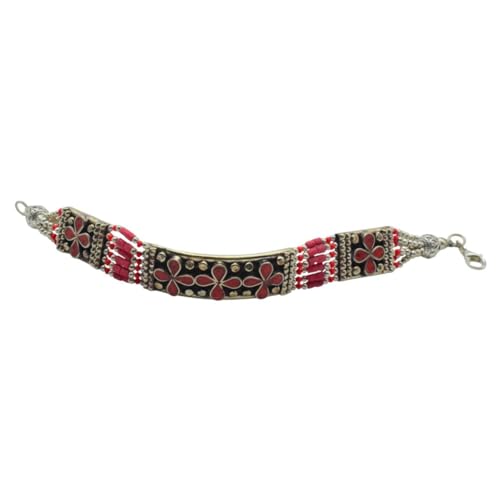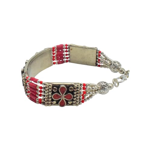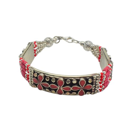 Indian Stones MA - اسوره هندي فاخرة من الفضة المخلوطة بالنحاس اقل من العيار مرصع بأحجار طبيعية كريمة من المرجان - احمر B14