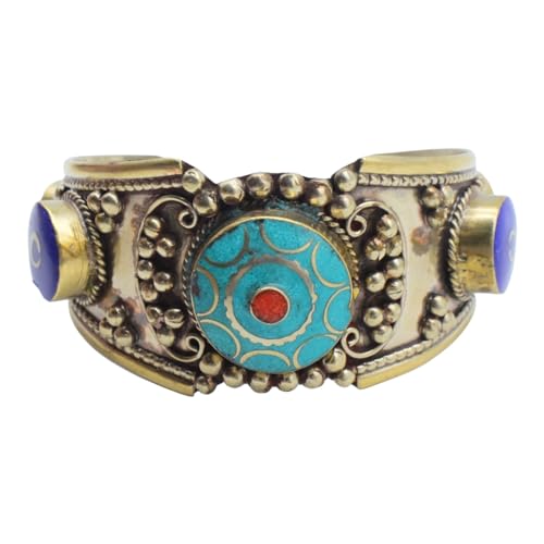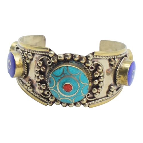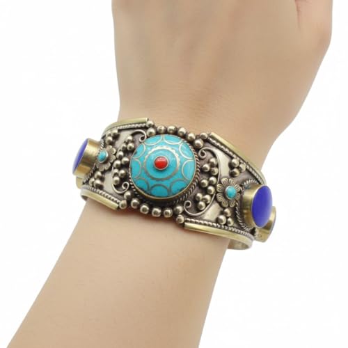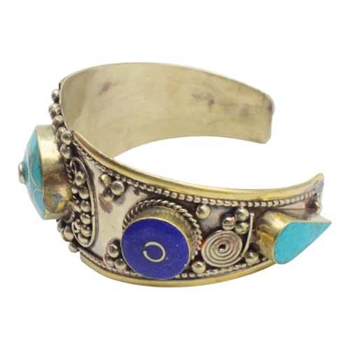 Indian Stones MA - Bracelet Indian Luxury Silver Mixed With Copper Less Than The Caliber Inlaid With Natural Gemstones Turquoise And Lapis Lazuli - Turquoise Blue B20