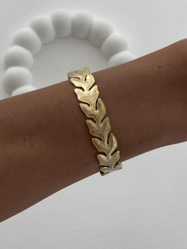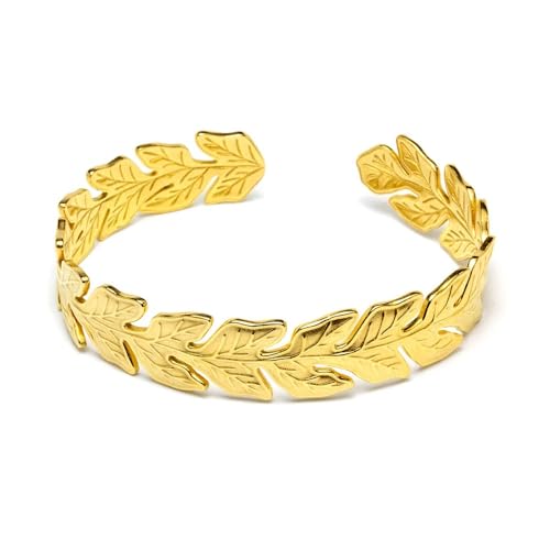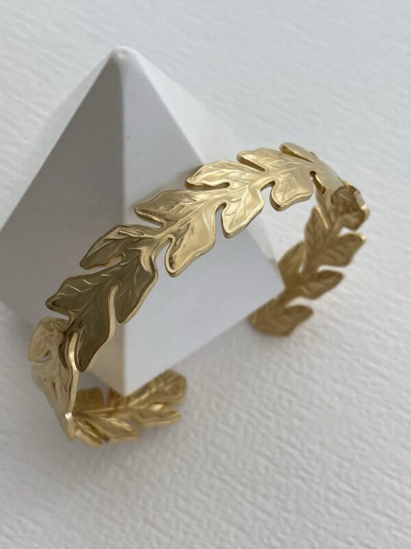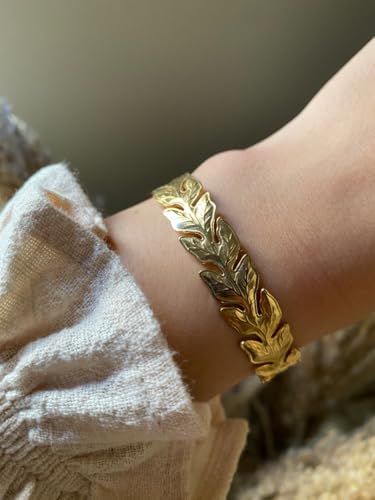 Generic - Bracelet Leaf Cuff Stainless Steel 18k Gold Plated - Adjustable