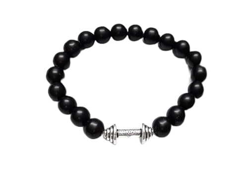 Other - Bracelet Made of Matte Onyx & Silver Dumbbell