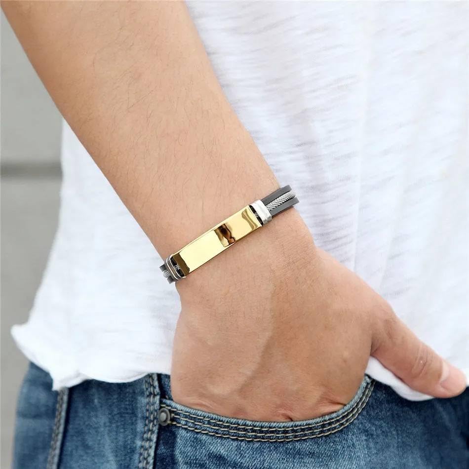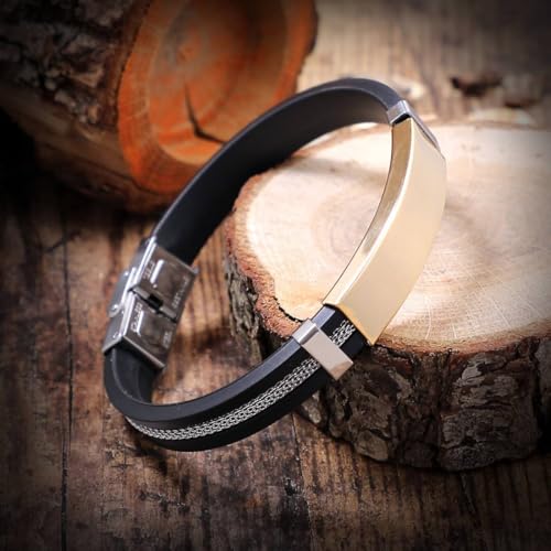 Generic - Bracelet Men Wristband Black Grooved Rudder Mesh Chain Insert Gothic Wristband Stylish Bangle Accessories For Men Jewelry Gift