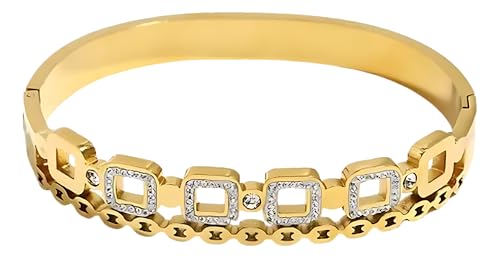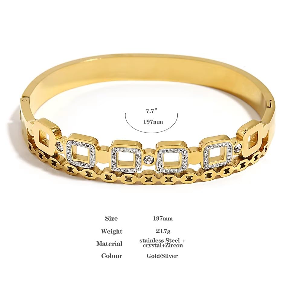 Generic - Bracelet Quadrato Zirconia And Cristal Bangle and Style Gift For Women Birthday Christmas Party Summer Holiday Fashion Day Valentine's Day - Stainless Steel 18K gold Plated