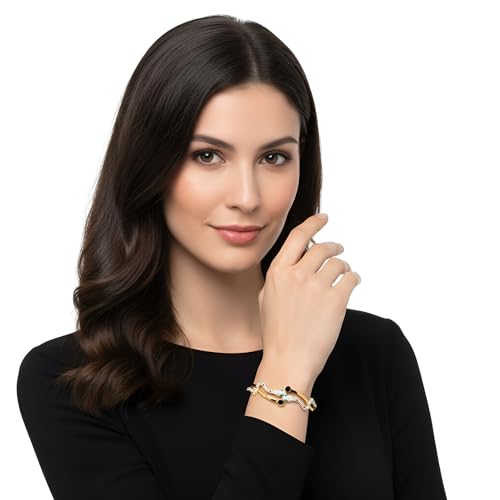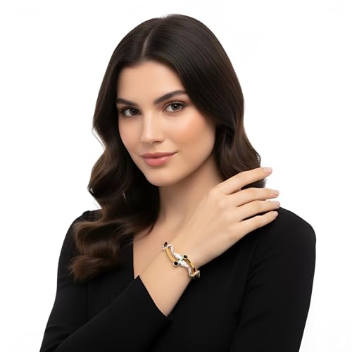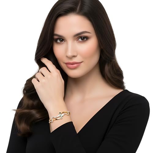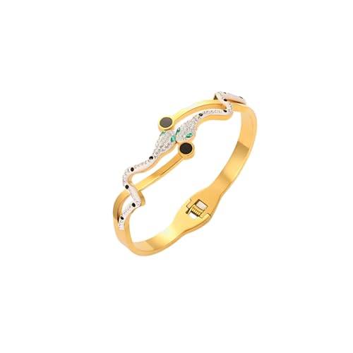 Generic - سوار بتصميم عيون خضراء على شكل ثعبان وزركونيا وكريستال مناسب كهدية للنساء في اعياد الميلاد والكريسماس والعطلات الصيفية - ستانلس ستيل مطلي بالذهب عيار 18 قيراط