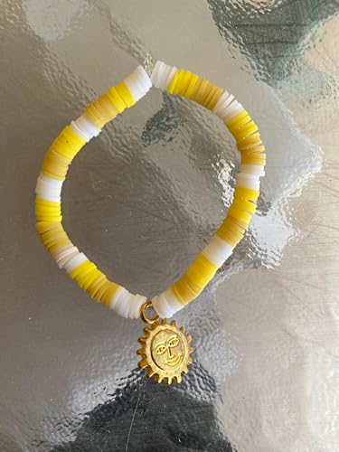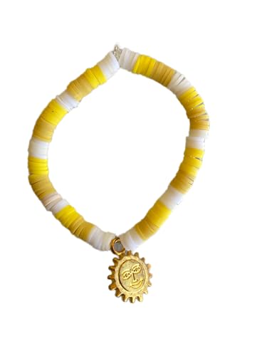 Generic - Bracelet with rubber beads made of polymer clay in different shapes and colors decorated with rainbow colors for women, beach jewelry YELLOW (CHA)