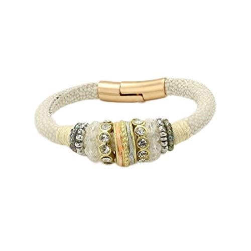 Other - Bracelets for Women with White Leather and Beads and Diamond Rings Item #322 - 1