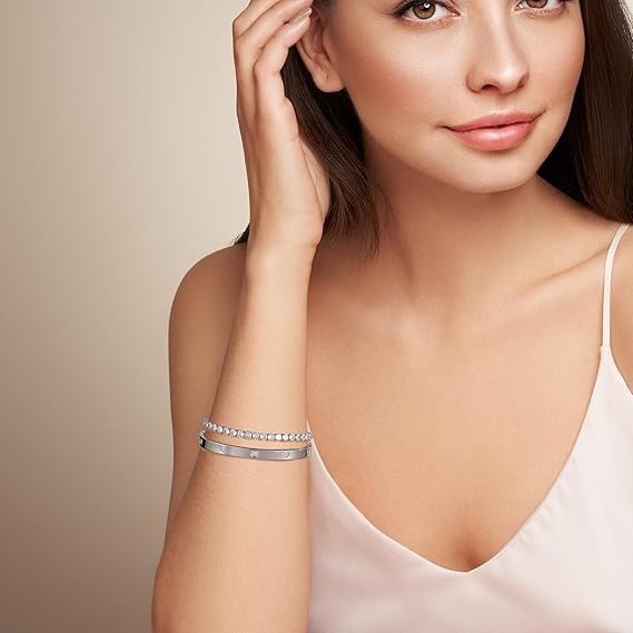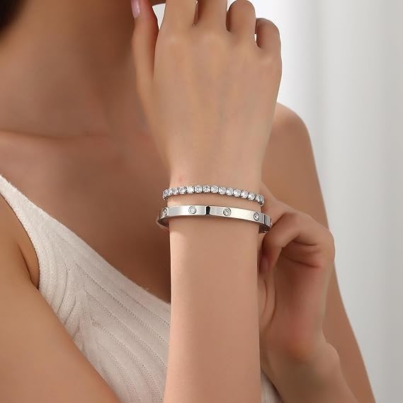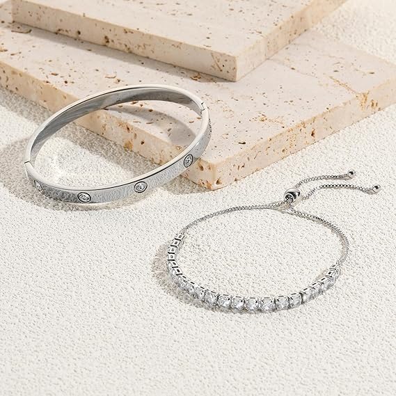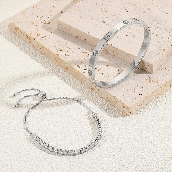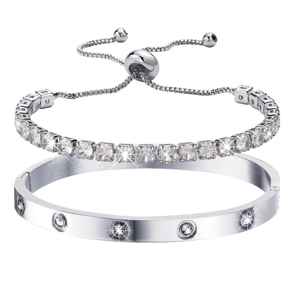 Generic - Bracelets Set for Women - Love Bracelet and Tennis Bracelet with Zircon Inlaid 14K Gold Plated Stainless Steel Jewelry Elegant Gift for Women Girls